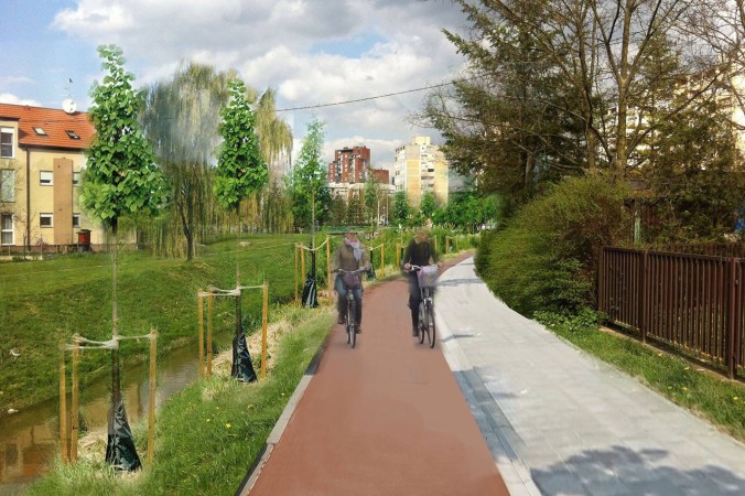 Na temelju toga udruga izlaže svoj prijedlog mogućeg rješenja navedene staze, koja osim odvojenja pješaka i biciklista predviđa i krajobrazno uređenje cijele dionice potoka (što drvoredima, što drugim načinima oblikovanja). Uz staze bi trebalo predvidjeti odmarališta i druge popratne sadržaje.