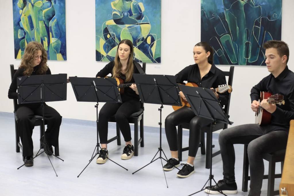 Otvorenje je započelo pozdravnim govorom tajnika udruge Radoslava Dumančića, koji je istaknuo važnost podrške mladim umjetnicima i bogatstvo različitih materijala i stilova koje Savić unosi u svoje radove. Mlada kiparica se zahvalila svima koji su podržali njezin rad, dok su u glazbenom dijelu večeri nastupili srednjoškolci Glazbene škole Zlatka Grgoševića. Tamburaški kvartet – Nika Jurčević na bisernici, Dunja Soldo na braču, Dora Pisačić na čeloviću i Alen Hanžić na čelu, pod vodstvom mentorice Ivanke Potočnik – izveo je Mozartov Divertimento u D duru, Andante i Piazzollin Libertango.