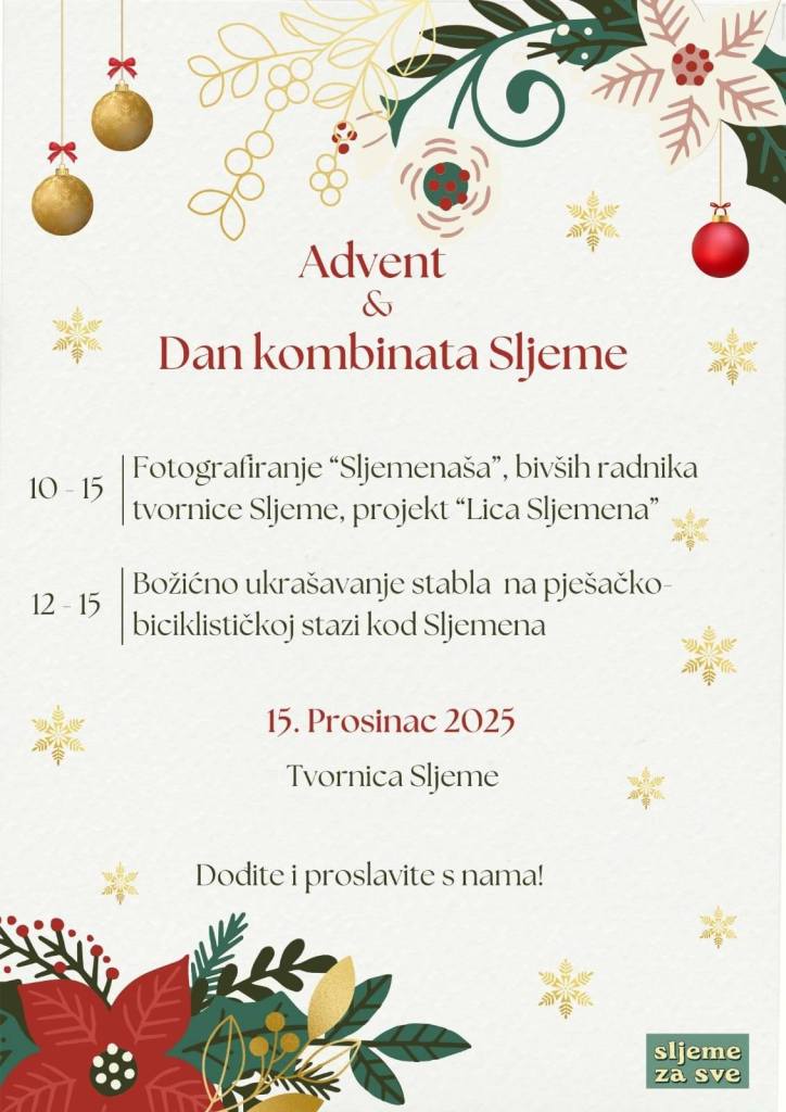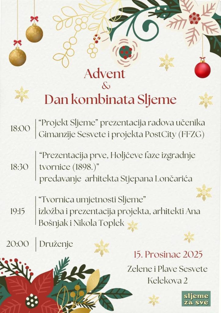 Advent & Dan kombinata Sljeme donosi spoj adventskog duha, industrijske povijesti i vizija budućnosti, pozivajući građane da se uključe u promišljanje o prostoru koji je desetljećima obilježavao život ovoga dijela grada.