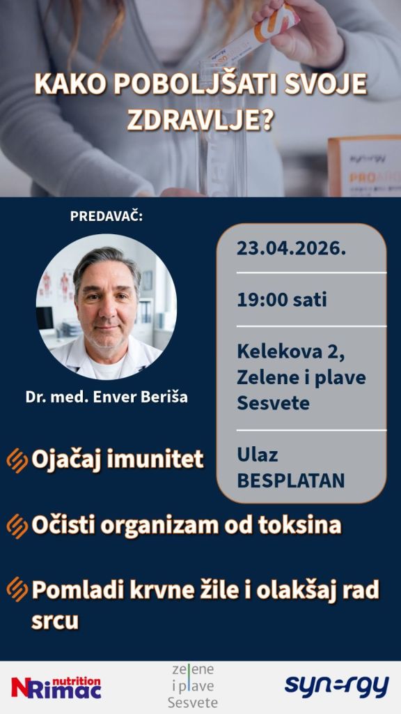 Predavanje će održati dr. med. Enver Beriša, a organizatori događanja su Rimac Nutrition i Synergy. Fokus tribine bit će na praktičnim i primjenjivim savjetima za očuvanje zdravlja kroz tri ključna segmenta – jačanje imuniteta, detoksikaciju organizma te unapređenje kardiovaskularnog sustava.