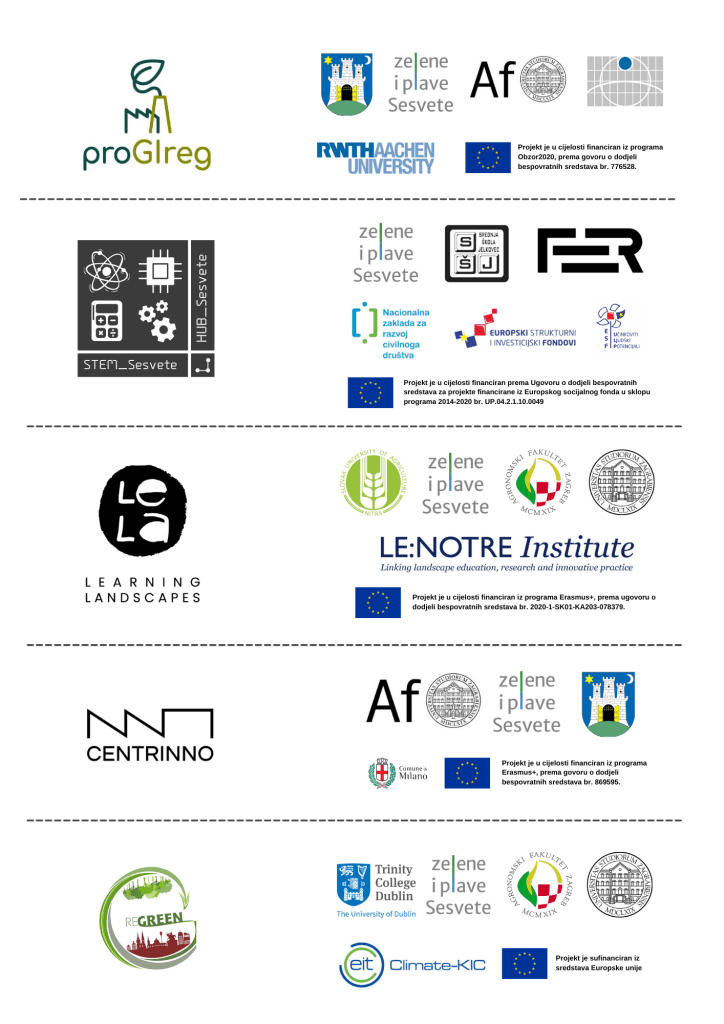 Udruga Zelene i plave Sesvete sudjeluje u provedbi pet projekata sufinanciranih iz sredstava Europske unije, kako slijedi:
